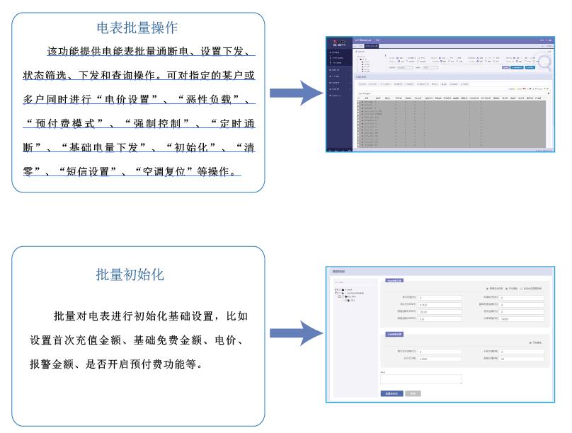 可以進行免費基礎電量設置、預購電量、無費關斷、用電情況查詢、退費管理、支持中途更換操作員、打印報表等。