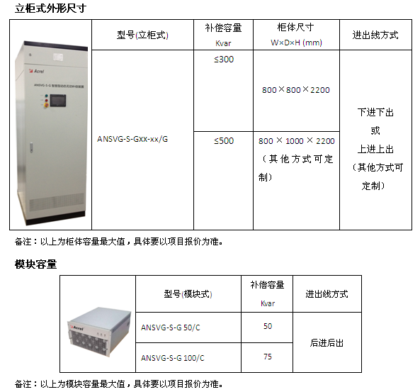 具體型號:ANSVG-S-G 100-50/G 技術參數:無功補償分補容量100kvar,共補容量50kvar 電壓等級:400V 防護等級:IP20(可按客戶要求定制)