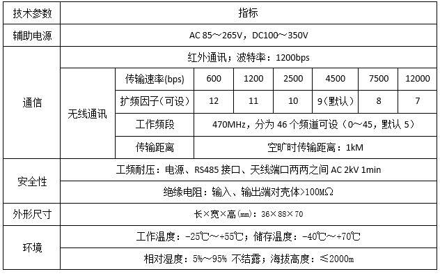 具體型號:AEW110 技術要求:470MHz工作頻段 通訊協議:RS485 輔助電源:AC220V